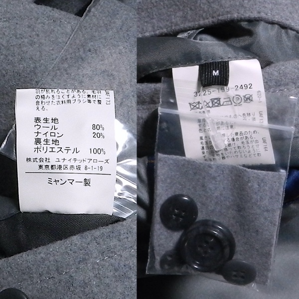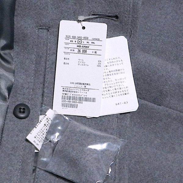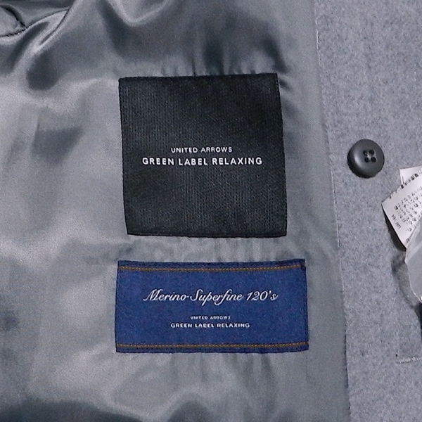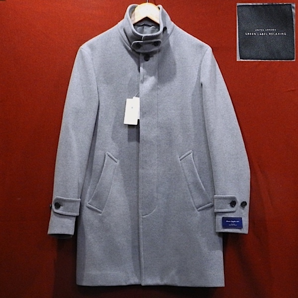 新品 ユナイテッドアローズ GREEN LABEL Merino Superfine120's ハイネック バルマカン ステンカラー シングルコート グレー M 未使用