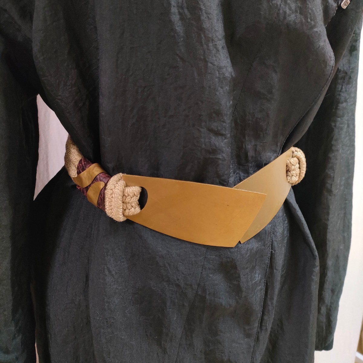 ヴィンテージ ビンテージ vintage レトロ retro 古着 used antique アンティーク 革 皮 レザー 太い 太ベルト デザインベルト アメリカ古着 US グリモワール ロキエ ジャンティーク ゴムベルト ゴツい レディース 成人式 パーティ コスプレ ゴシック パンク エモ サイバー
