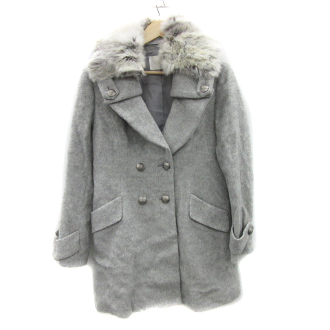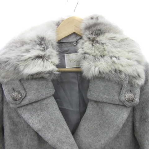 カーラ Cara ピーコート Pコート ロング丈 ダブルボタン ラビットファー ウール混 ライトグレー /YS3 レディース