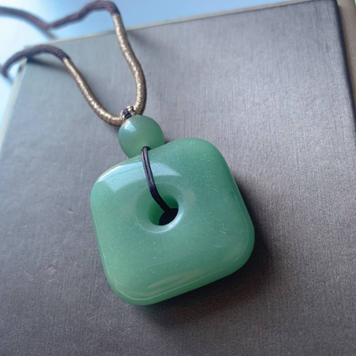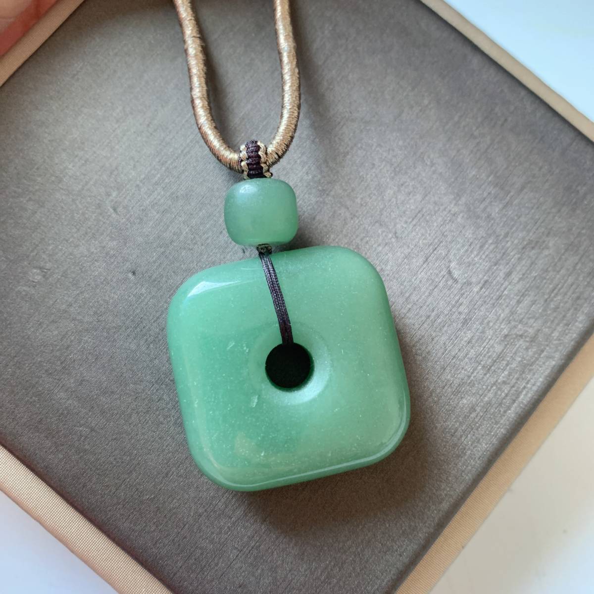 訳あり◇東陵玉◇ヒスイ◇ネックレス◇ペンダント◇四方平安扣◇お守り◇天然石◇パワーストーン◇巾着袋付き027P158