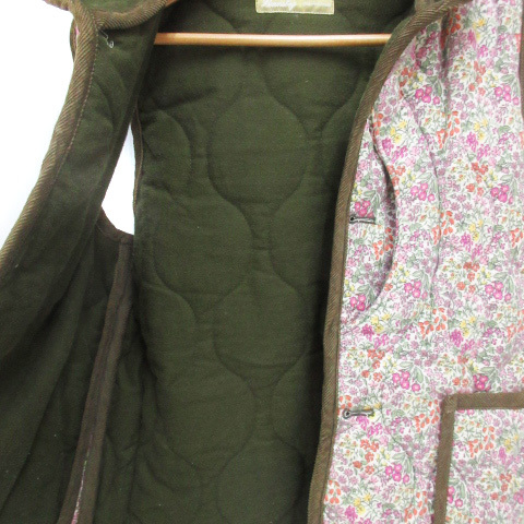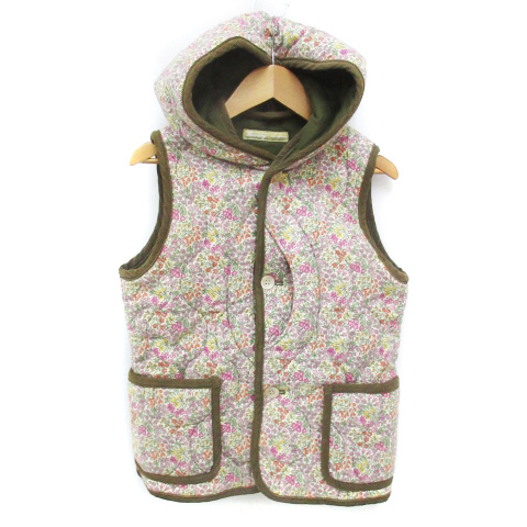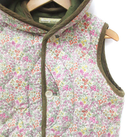 ビームスボーイ ジャケット 中綿ベスト フード付き ミドル丈 スタンドカラー シングルボタン 花柄 マルチカラー F カーキ 白 レディース