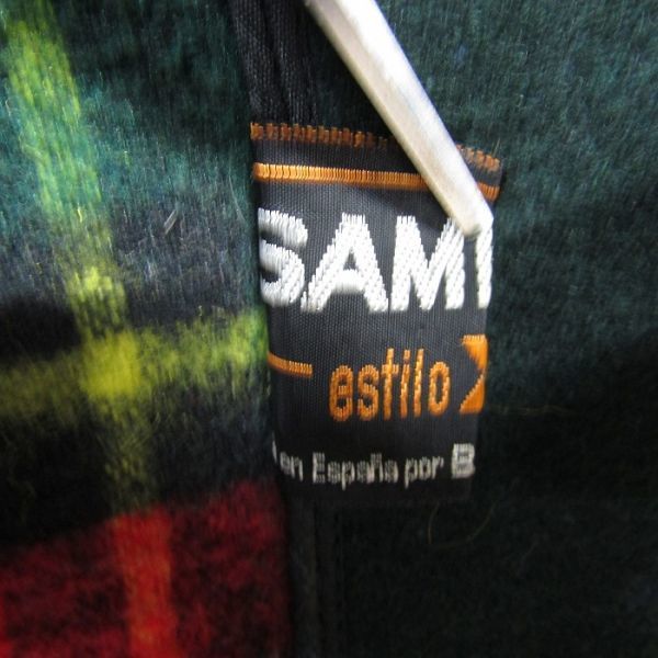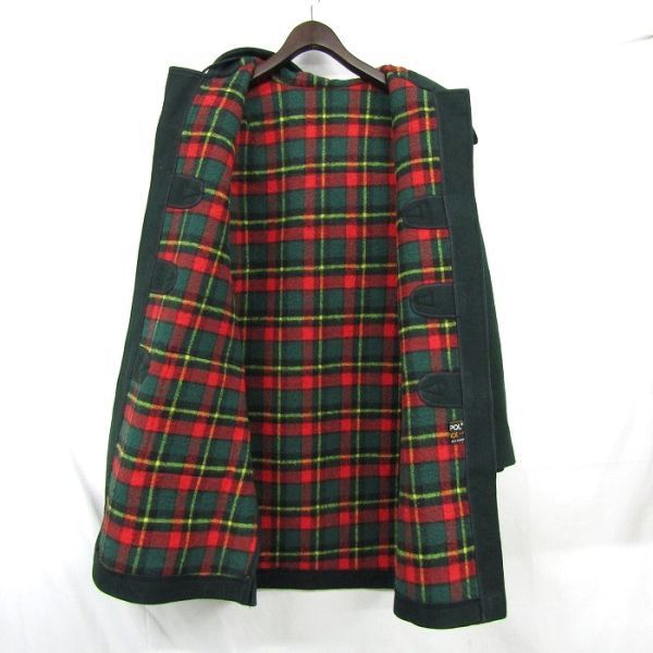 サイズ 46 SAMPOL ロング ダッフル コート ジャケット アウター 裏地 チェック フード グリーン 古着 ビンテージ 3JA0501