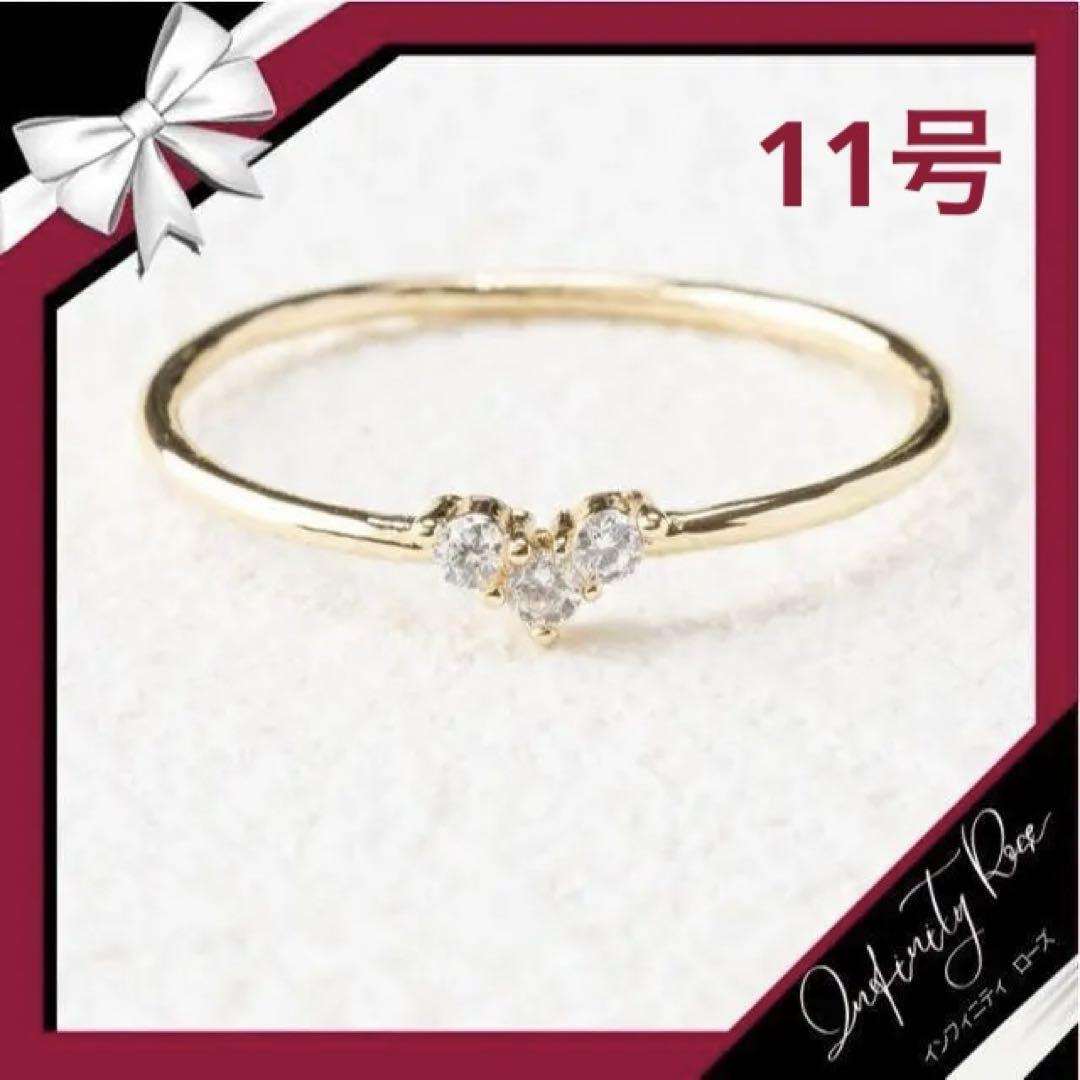 (R014G)11号 ゴールドシンプル小粒3粒のジルコニアリング 指輪