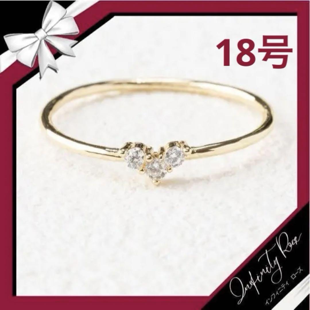 (R014G)18号 ゴールドシンプル小粒3粒のジルコニアリング 指輪