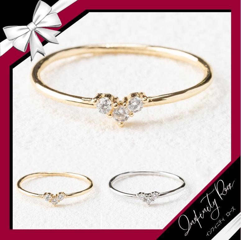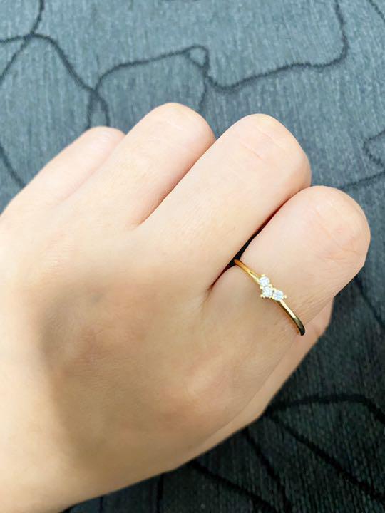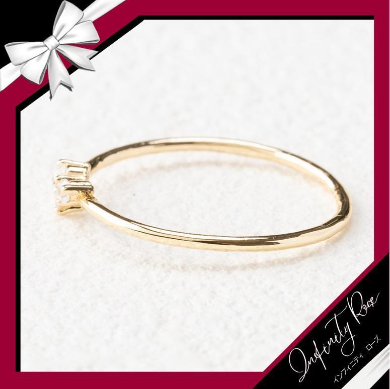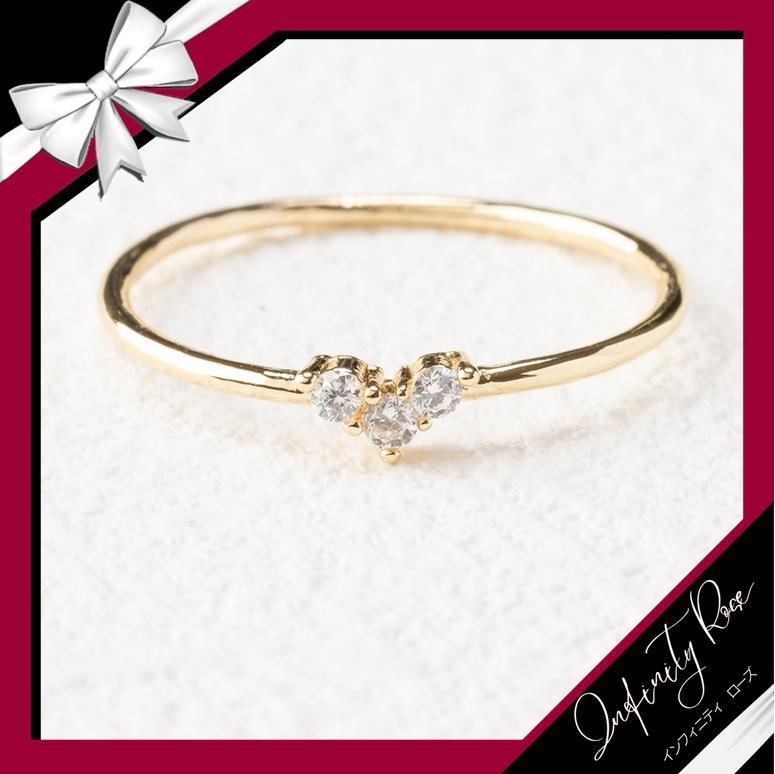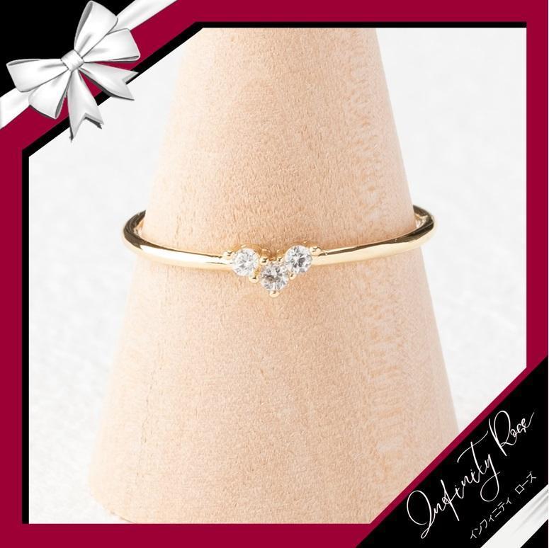 #ゴールドシンプル小粒3粒のジルコニアリング