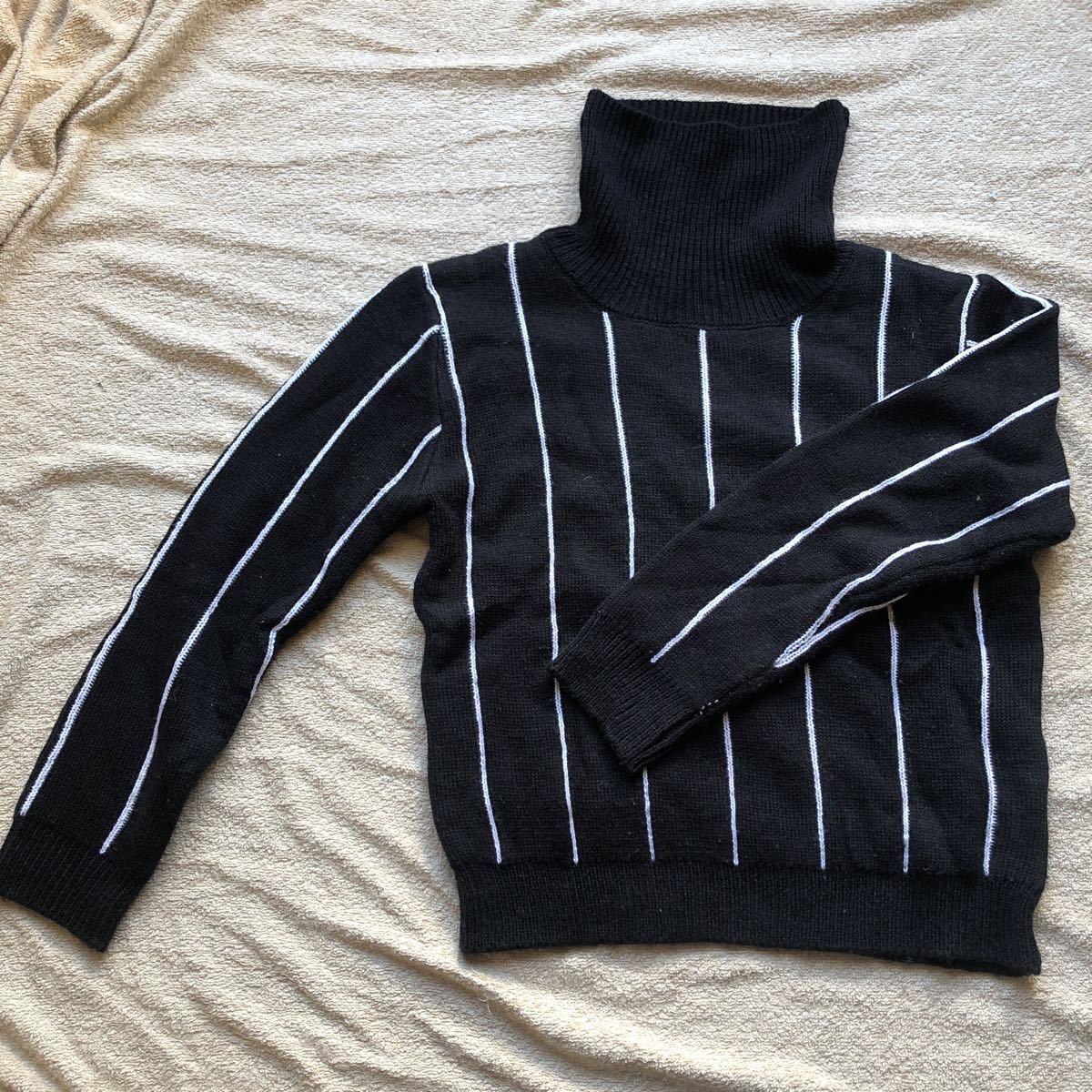 状態良好。薄手です。黒地に白のストライプ。