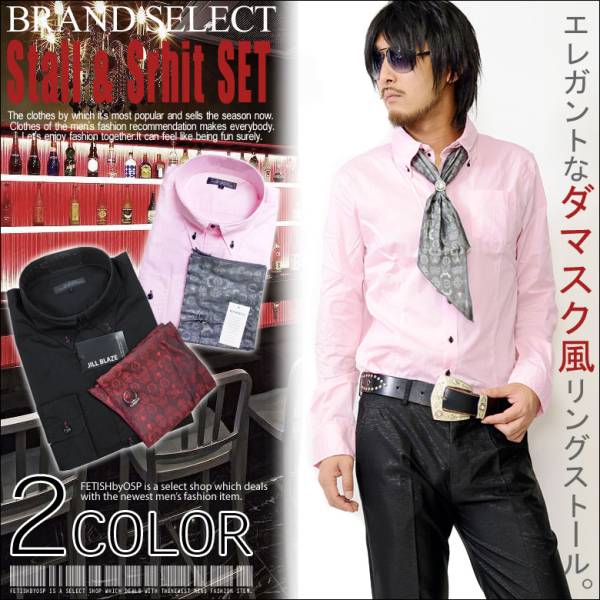 このセットで一気にドレススタイルが完成する一押しアイテム! ボタンダウンのデュエシャツにダマスク風ススタイルだけでなく、 カジュアルなど幅広いジャンルにも使える万能アイテム。 ジルコニアをふんだんに使用したリングは煌びやかでどの角度からも目立ちます! シーズンを問わないセットなのでパーティー用にはモチロン、 イベントは二次会などいつもよりワンランク上のスタイルでキメることができます! ※ストールのみの販売は致しておりません。 モデルデータ:177cm/65kg/Lサイズ着用 シャツサイズ M L LL 着丈 約70cm 約71cm 約74cm 身幅 約51cm 約52cm 約53cm 肩幅 約43cm 約45cm 約46cm 袖丈 約62cm 約63cm 約64cm ストールサイズ FREE 横(最長) 約115cm 横(最短) 約80cm 縦 約16cm ※上記表は実寸サイズとなります。 素材 シャツ:綿100% ストール:ポリエステル97% ポリウレタン3% |