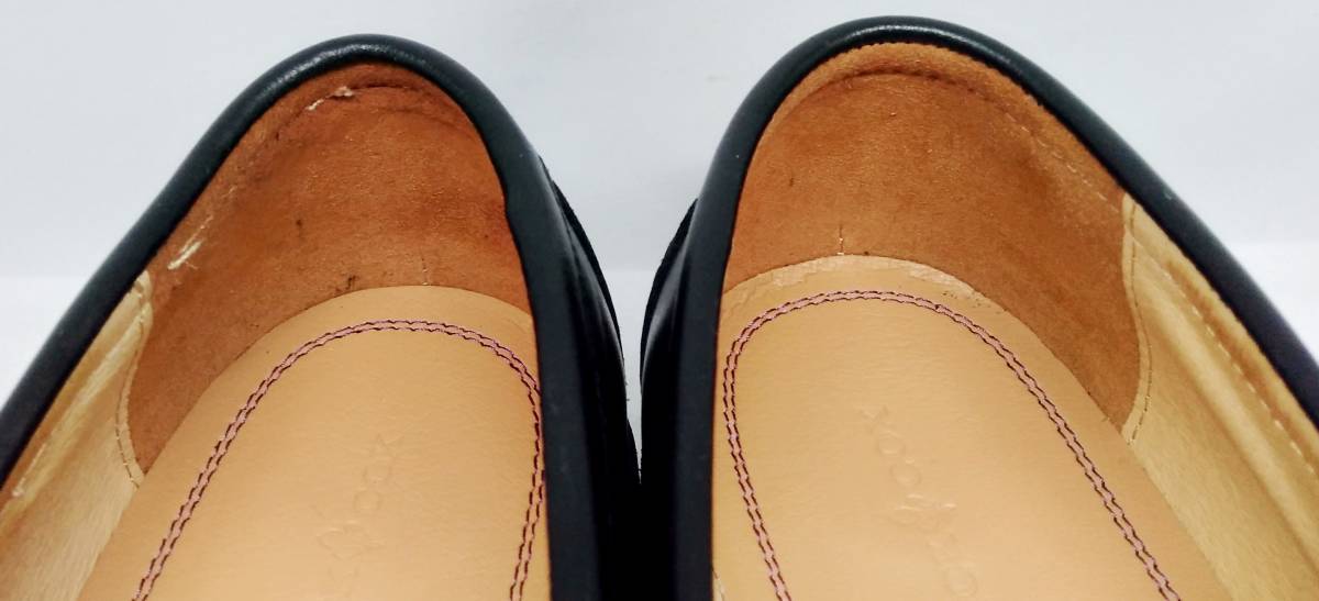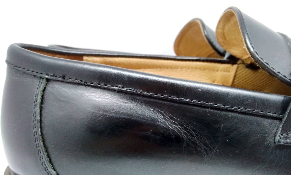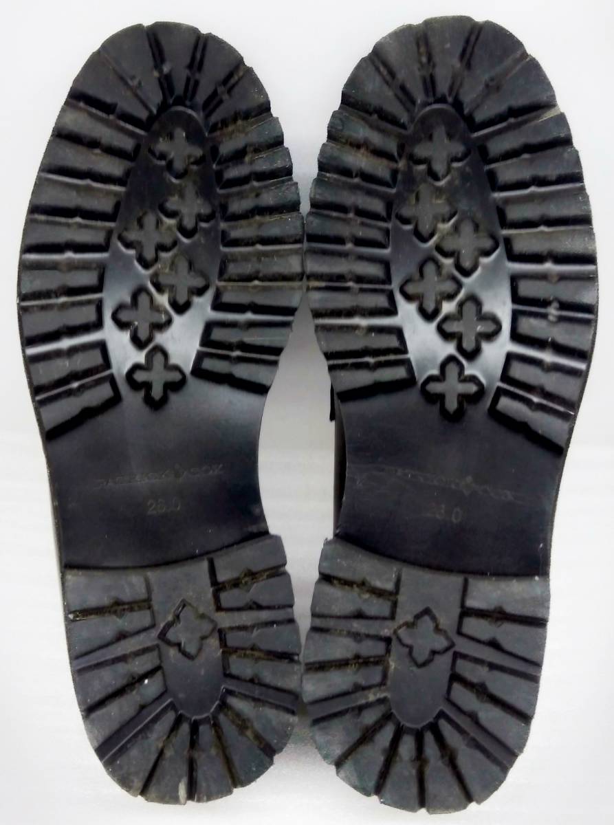 右脚サイドに少々ヨレ、表面の所々に少々スレ、底面にスレ、汚れ、内側に少々汚れがありますが、全体の状態は概ね良好です。 |