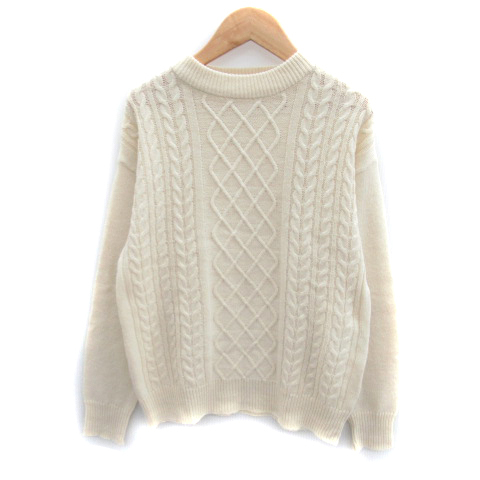 サマンサモスモス SM2 ニット セーター 長袖 クルーネック ケーブル編み オーバーサイズ L オフホワイト /SY25 レディース