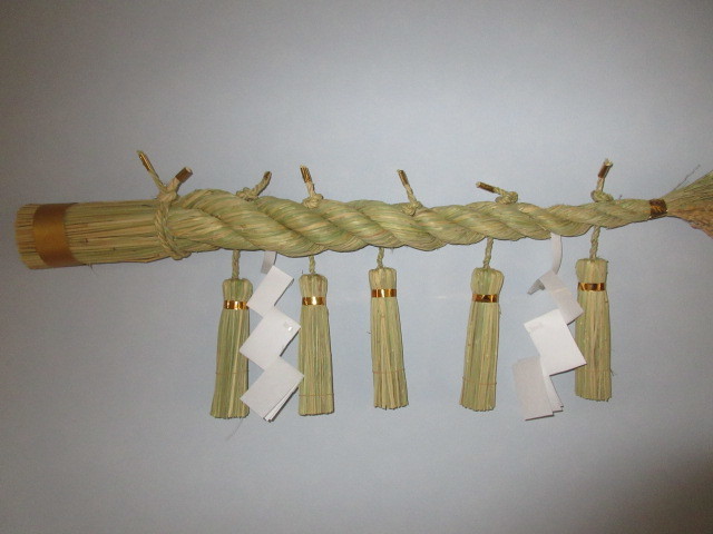 [長さ120㎝ 太6~7㎝]    片角型 房飾り5個 御幣  しめなわ しめ縄 注連縄 〆縄