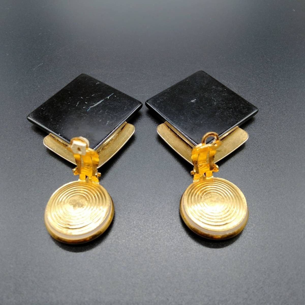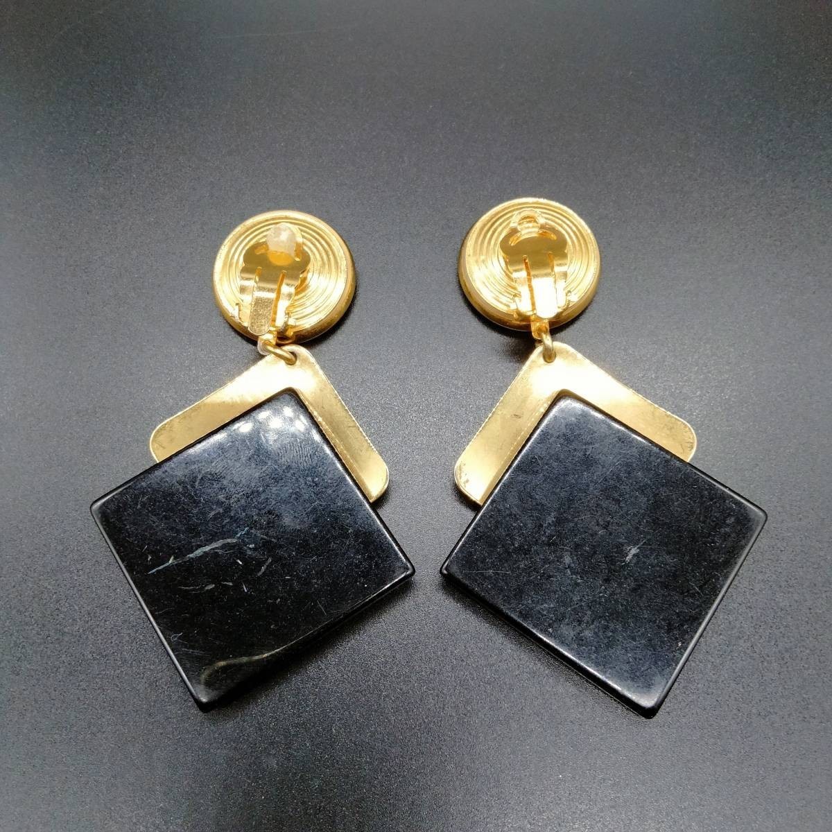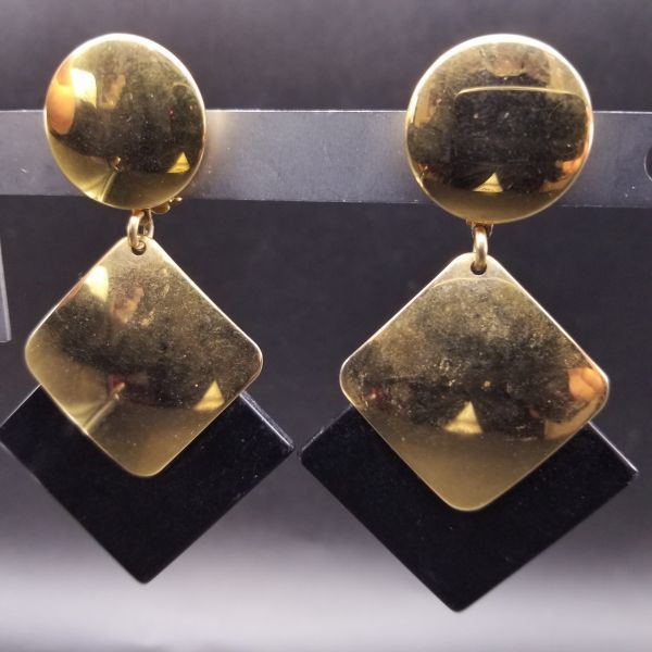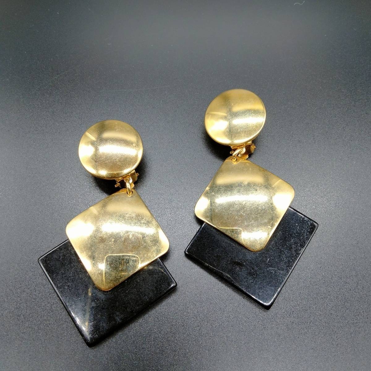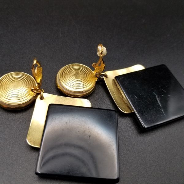アールデコ ひし形 ブラック/ゴールド 2トーン 米国 ビンテージ イヤリング 昭和レトロ コスチュームジュエリー 大ぶり パーティー SOK37