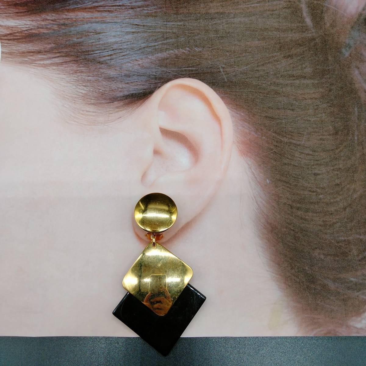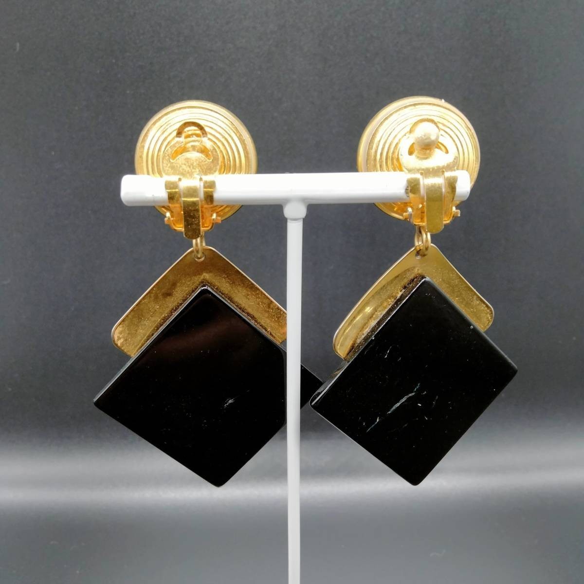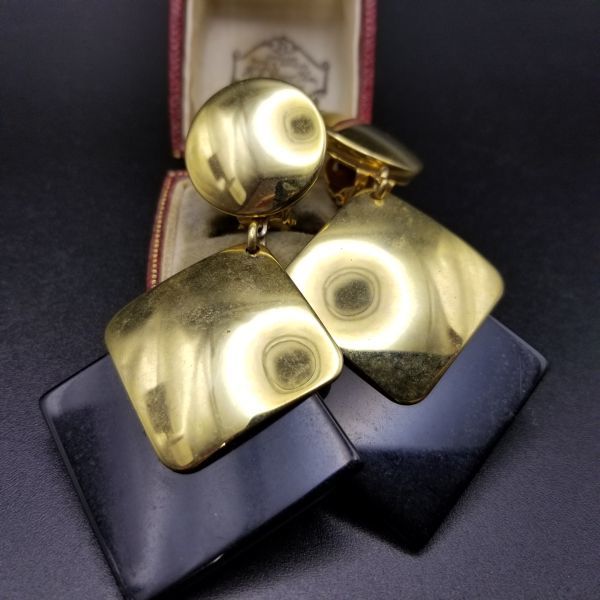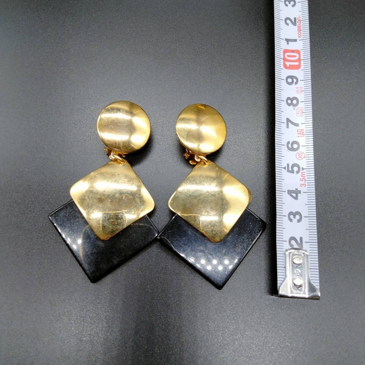 アールデコ ひし形 ブラック/ゴールド 2トーン 米国 ビンテージ イヤリング 昭和レトロ コスチュームジュエリー 大ぶり パーティー SOK37