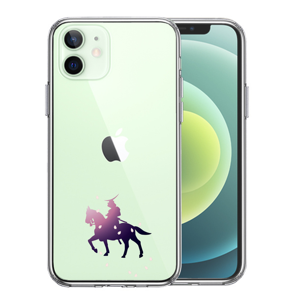 iPhone12mini ケース クリア 騎乗侍と桜 スマホケース 側面ソフト 背面ハード ハイブリッド