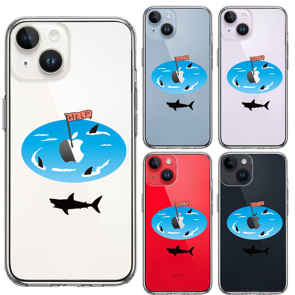 iPhone14Plus ケース クリア サメ ぐるぐる スマホケース 側面ソフト 背面ハード ハイブリッド