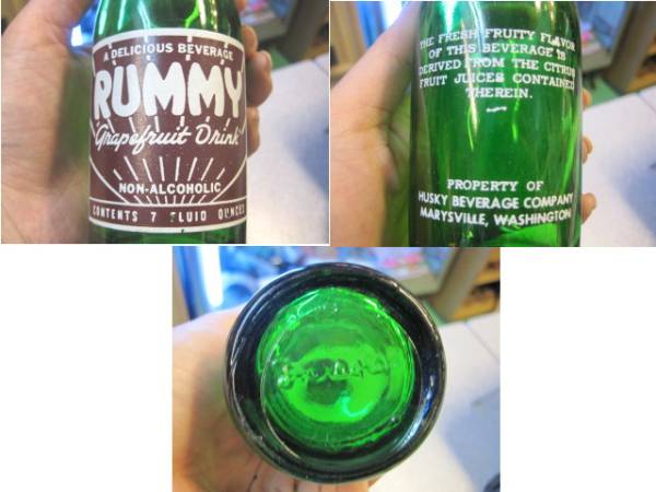 | アメリカのアンティークショップで 購入しました、 RUMMYのボトルです。 グリーンのボトルにポップなロゴで、 とても可愛いです♪ ヴィンテージ物なので、多少のキズ、擦れ等が ありますが、状態はGOODだと思います。 コレクションにいかがですか? . 高さ 約21 センチ です。 あとは、画像を見てご判断ください。 神経質な方のご入札はご遠慮ください。 ノークレーム、ノーリターンでお願いします。 |