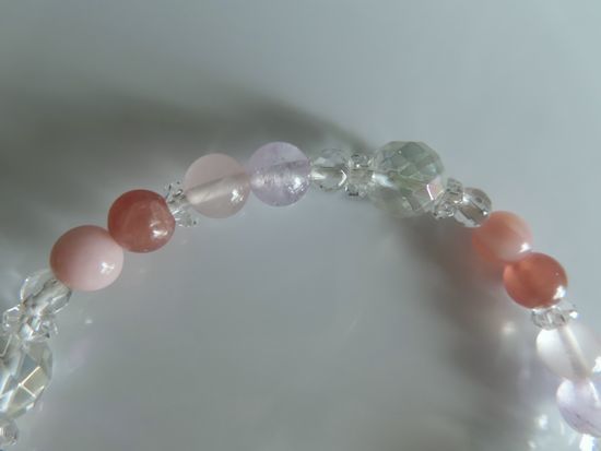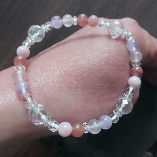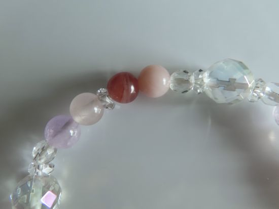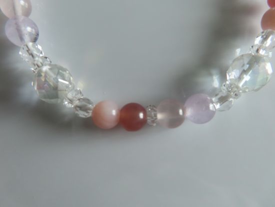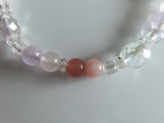 インカローズ、ピンクオパール、アメジスト、ローズクォーツ、コスモオーラ、水晶のブレスレット | |||