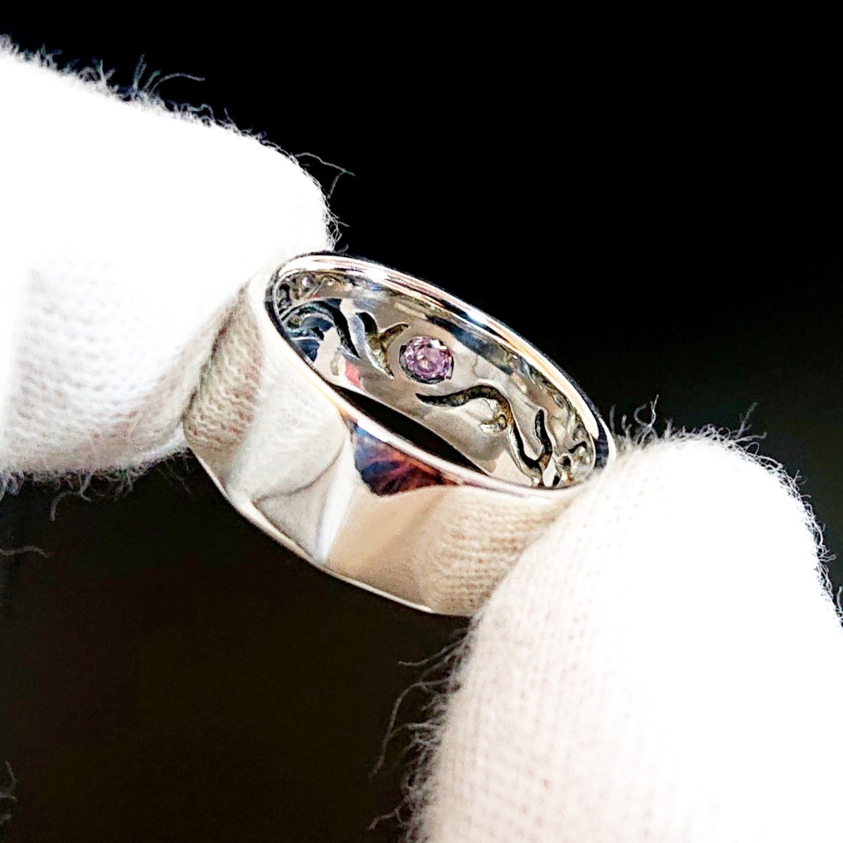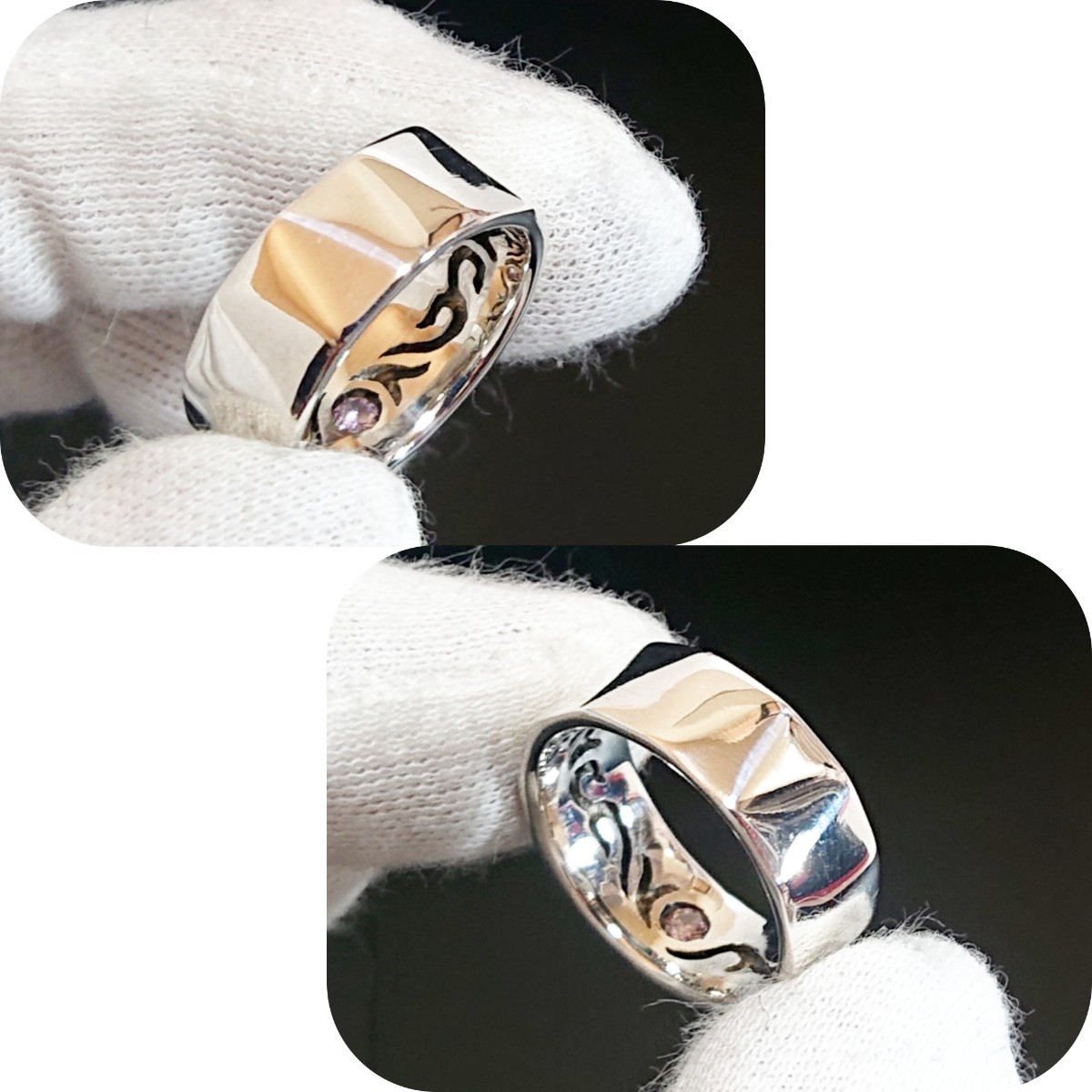 ピンクジルコニアは薄い色味の物をマウントしているのでユニセックスにご使用頂けます。
