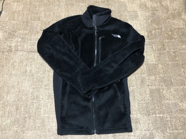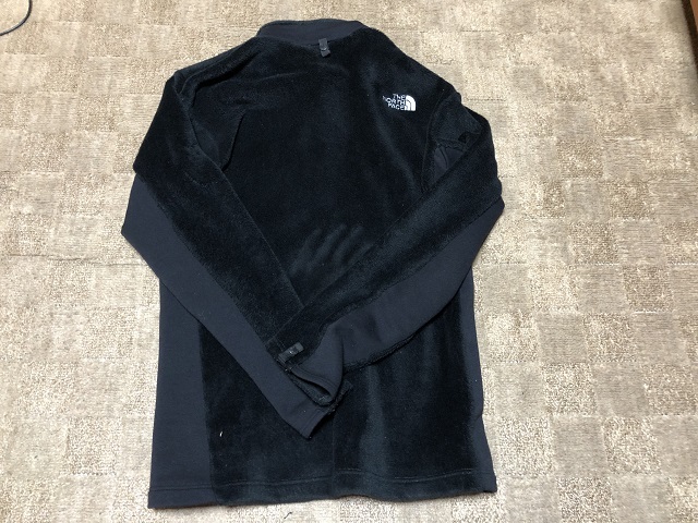 左二の腕あたりに5mmほどの穴が空いてしまい、ノースフェイス店舗にて修理をした跡があります。