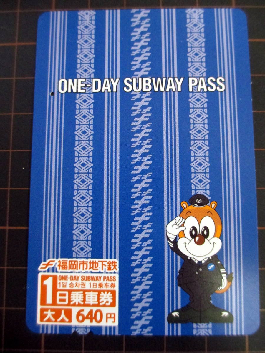 福岡市地下鉄定期券売り場でクレジットカード決済やスマホ決済で購入できる磁気カードタイプの1日乗車券、使用済みです。