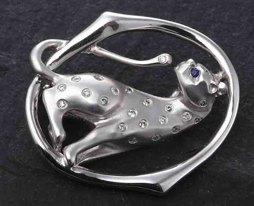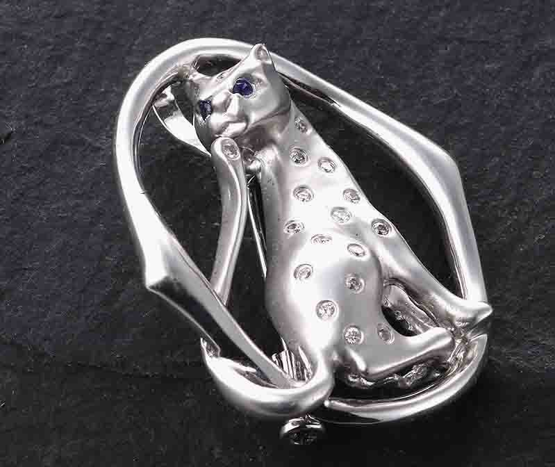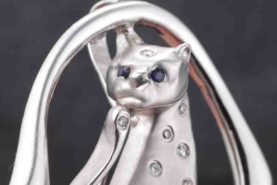 コメント | [[全ての商品に品質保証カードが付きますのでご安心ください]] スマートなネコと思われる動物をモチーフにしたブローチ兼ペンダントトップです。ネコ好きの作家だと思われる秀逸なデザインが魅力だと思います。枠部分は艶のある仕上げでネコ部分は極々細かい梨地仕上げになっています。 |
