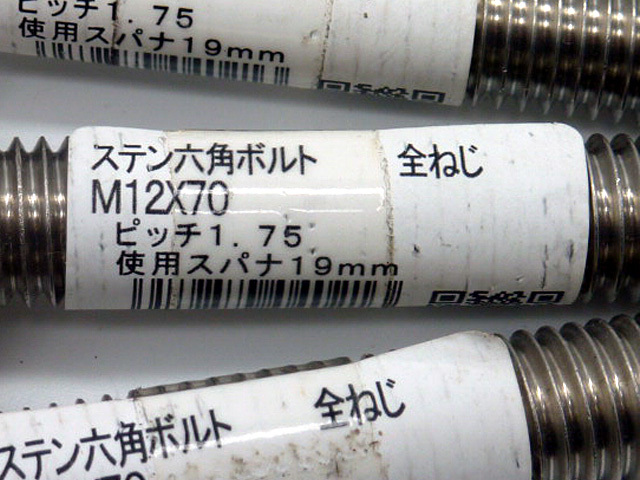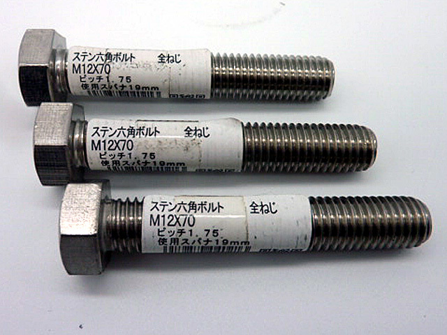 未開封 ステンレス 六角ボルト全ねじM12×70mm  3本