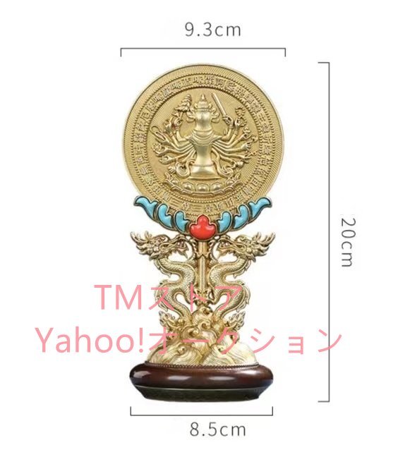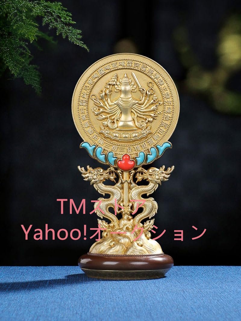 神鏡(台付) 真鍮製「本鏡」龍神彫り神鏡 (鏡径9.3cm・高さ20cm)◆神棚(お宮)・神殿の神具、神前のお供えに欠かせない道具
