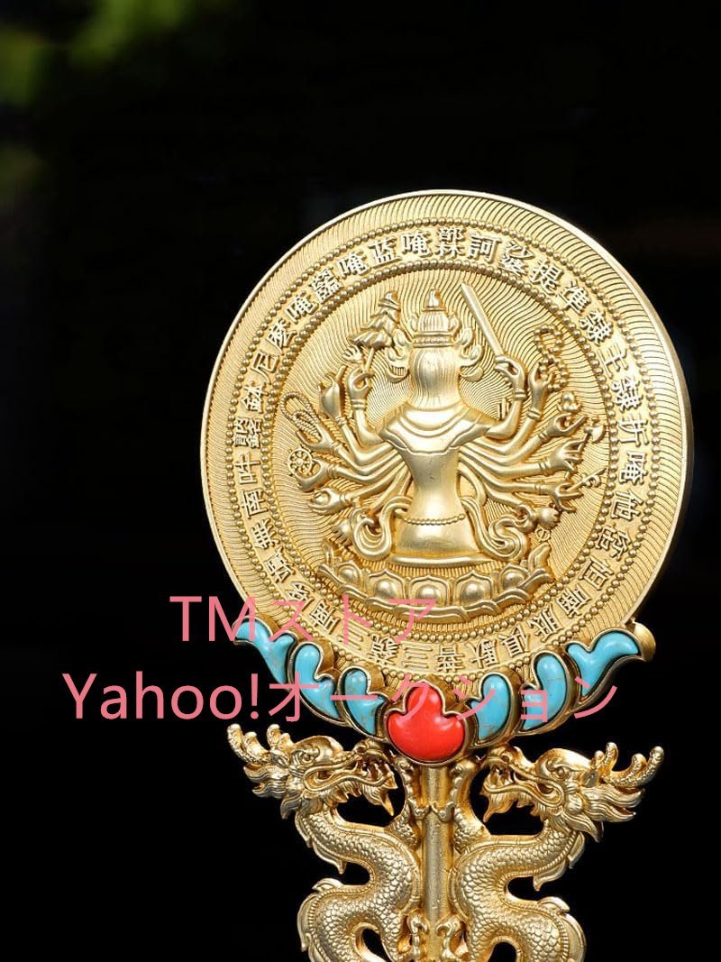 ●寸法:鏡径9.3cm×高さ20cm/材質:真鍮製 銅器(鋳造鏡)台付き