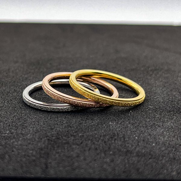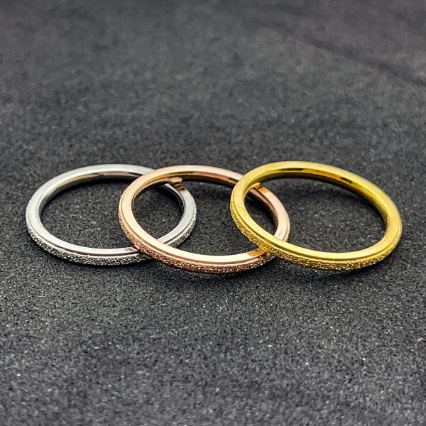 スターダスト加工のされたスリムなステンレスリングです。