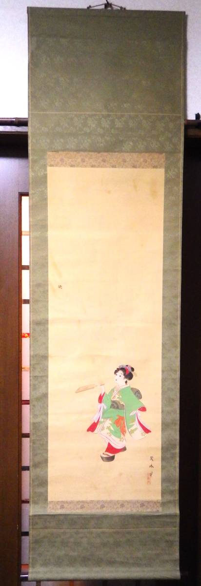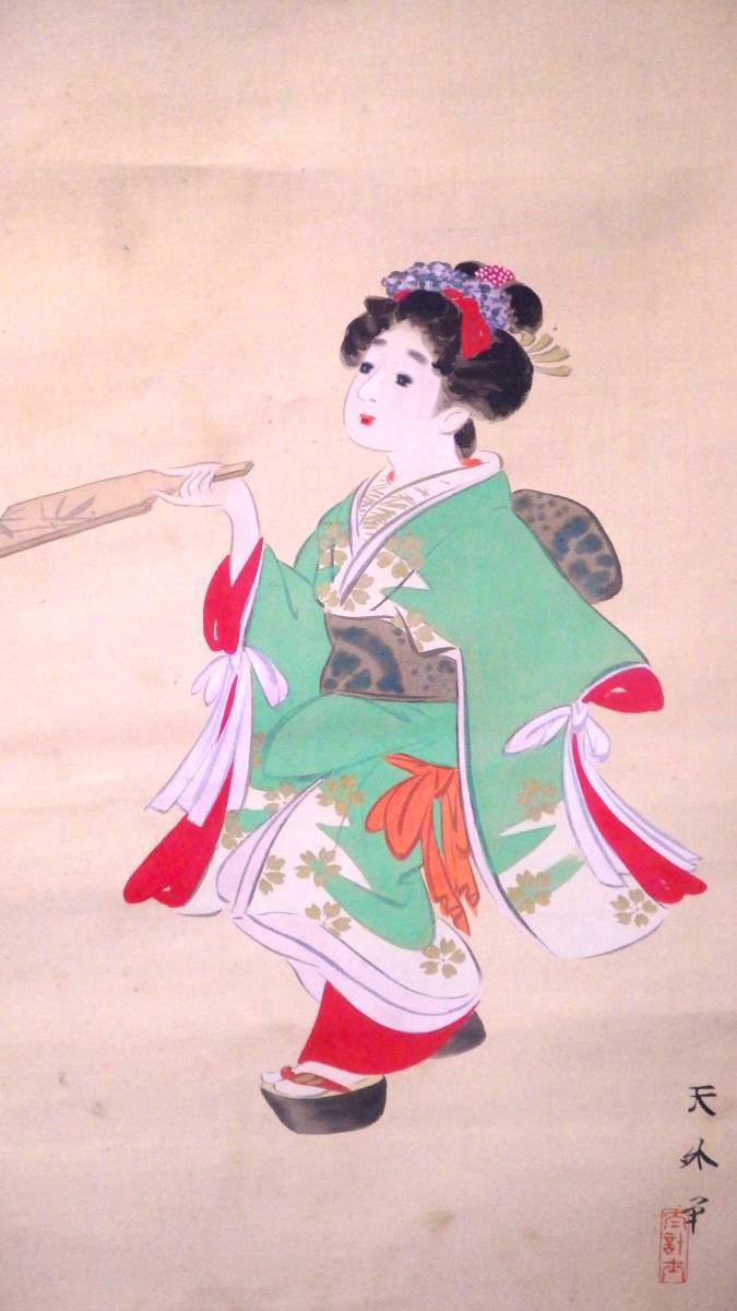 | 真作 美人画 『羽根つき』 天外筆 真筆 肉筆 絹本 桐箱 | |
