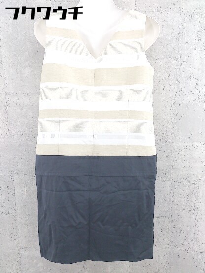 ◇ DES PRES デプレ TOMORROWLAND 切替 ノースリーブ 膝丈 ワンピース サイズ1 ホワイト系 ネイビー レディース