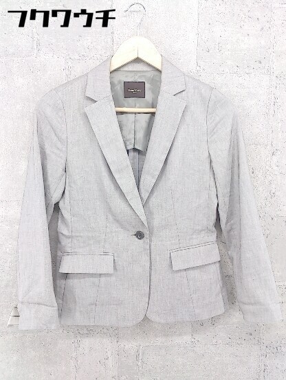 ◇ Demi-Luxe BEAMS デミルクス ビームス シングル1B リネン混 長袖 テーラード ジャケット サイズ36 グレー レディース