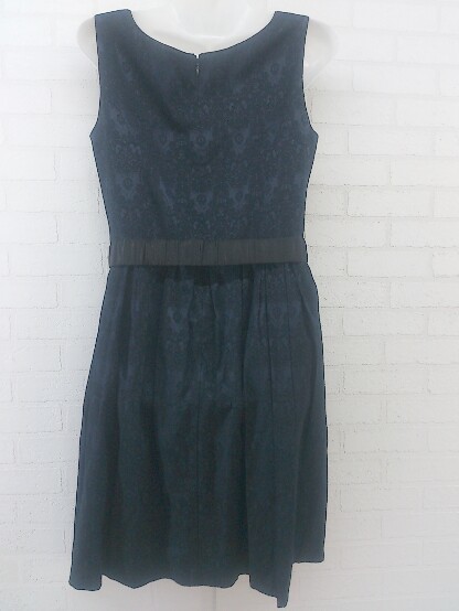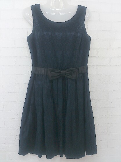 ◇ ◎ PEYTON PLACE ペイトンプレイス 総柄 ノースリーブ ミニ ドレス ワンピース サイズM ネイビー ブラック レディース P