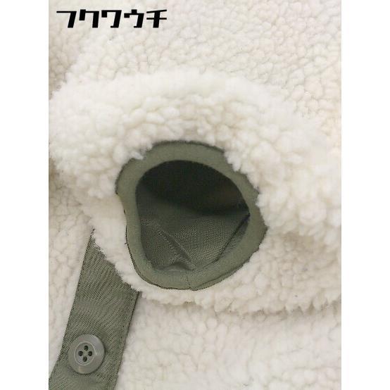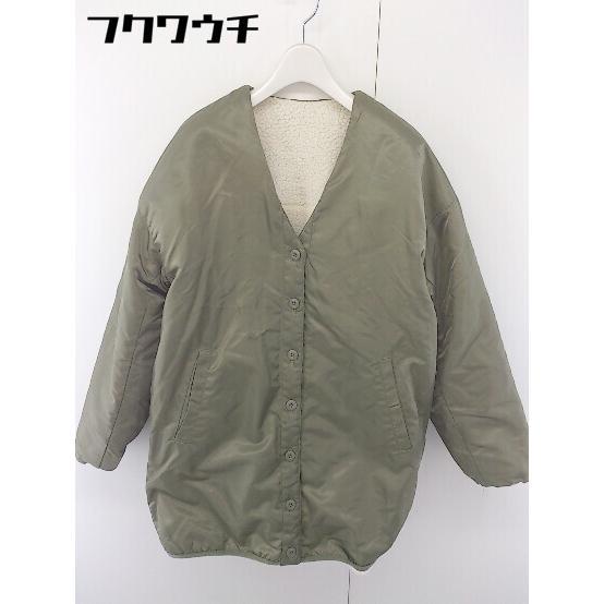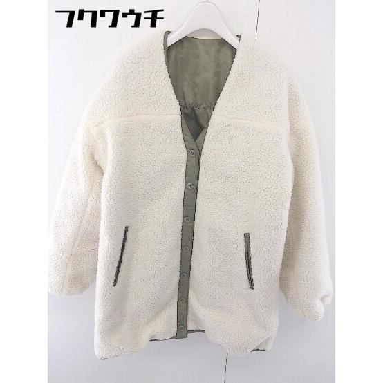 ■ earth music&ecology リバーシブル ボア 長袖 ノーカラー コート サイズF カーキ アイボリー系 レディース