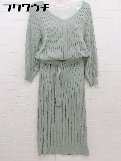 ◇ ◎ FREE'S MART フリーズマート ウエストベルト付 リブ ニット 長袖 ロング ワンピース サイズFR グリーン レディース
