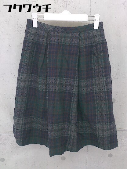 ◇ Rouge vif ルージュ ヴィフ チェック 膝丈 フレア スカート サイズ38 グリーン系 レディース