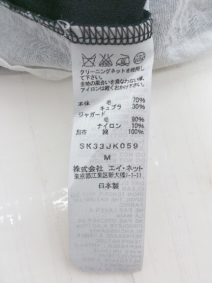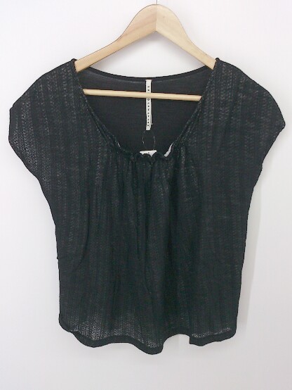 ◇ SUNAOKUWAHARA 切替 ウール混 ギャザー フレンチスリーブ カットソー プルオーバー サイズM ブラック レディース P