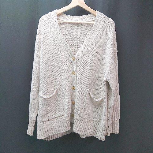 ◇ LOWRYS FARM ローリーズファーム フロントボタン ゆったりめ 無地 長袖 カーディガン サイズF アイボリー レディース E