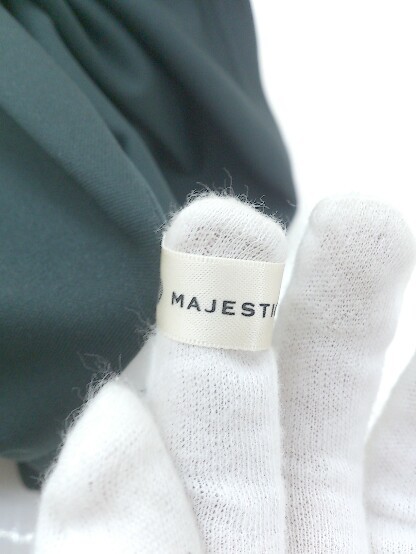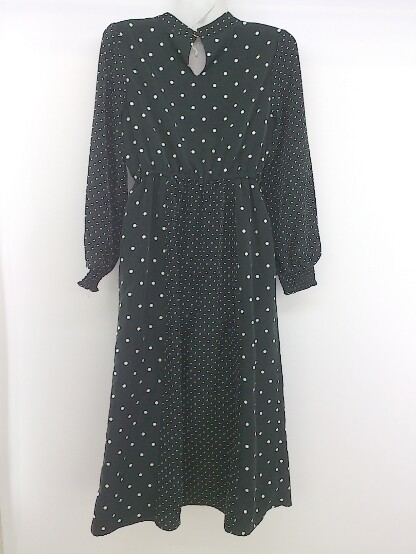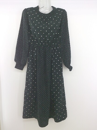 ◇ MAJESTIC LEGON 水玉 ドット 長袖 膝下丈 ワンピース サイズS ブラック オフホワイト レディース P