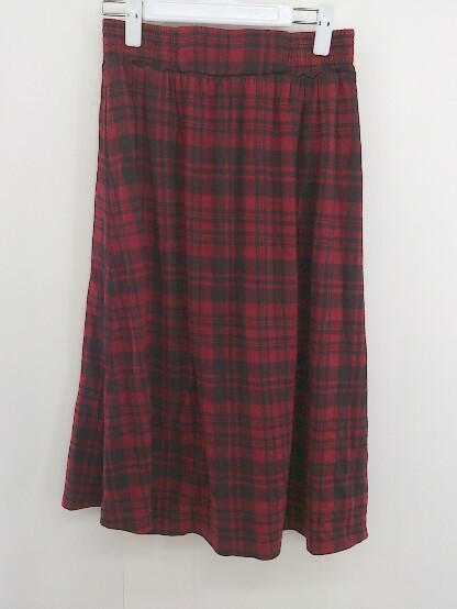 ◇ MOUSSY マウジー ウエストゴム ラップ巻き風 チェック 膝下丈 フレア スカート サイズ2 レッド ブラック レディース
