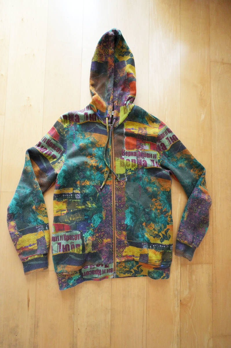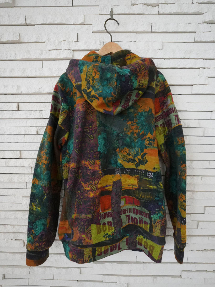 ボタニカルのようで一部ペイズリーや英字レタリングが入っているデザインです。