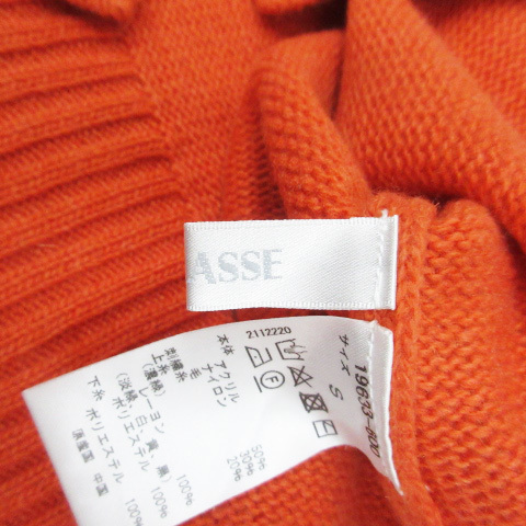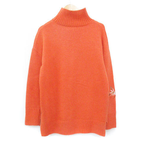 ドゥクラッセ DoCLASSE ニット セーター 長袖 ハイネック 花柄刺繍 ウール混 S オレンジ 白 ホワイト /FF30 レディース