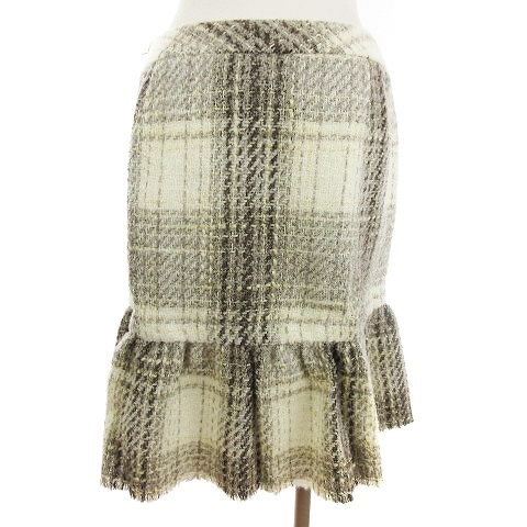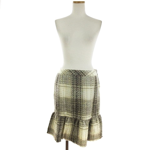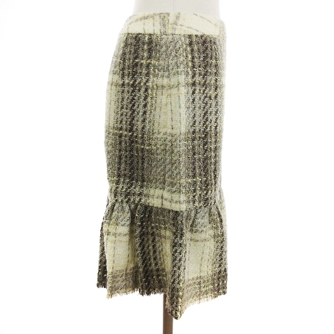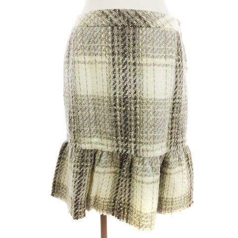 レリアン Leilian マーメイドスカート ひざ丈 タータンチェック ツイード ウール混 アイボリー グレー 11 L位 レディース