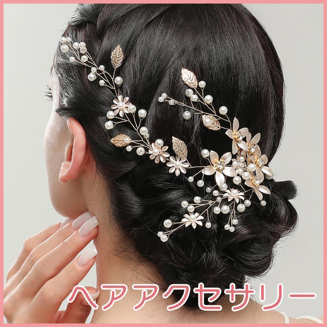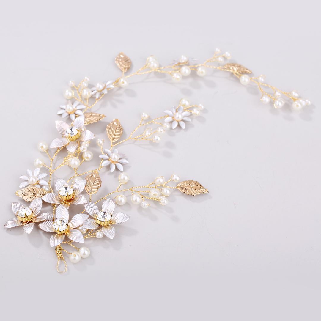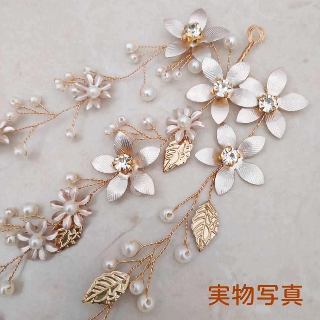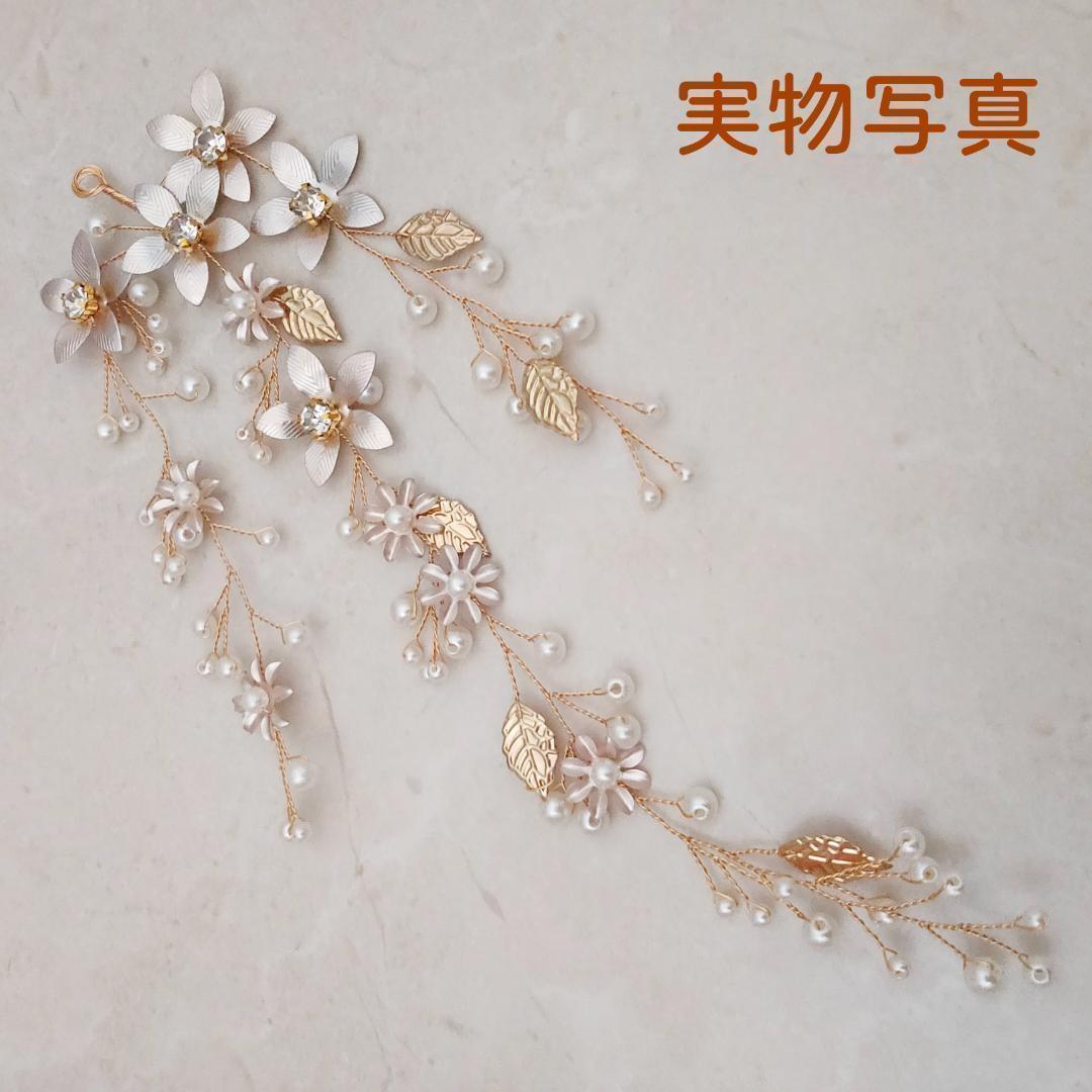 流れるようなお花、パール、リーフのデザインのヘッドアクセサリー