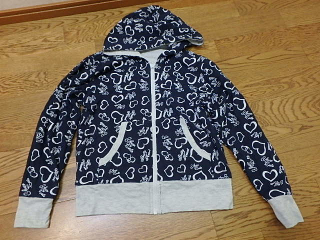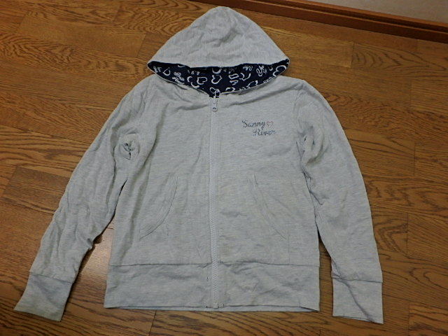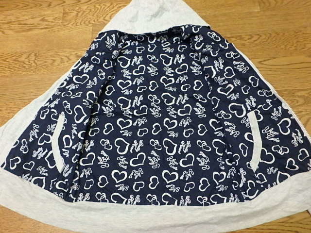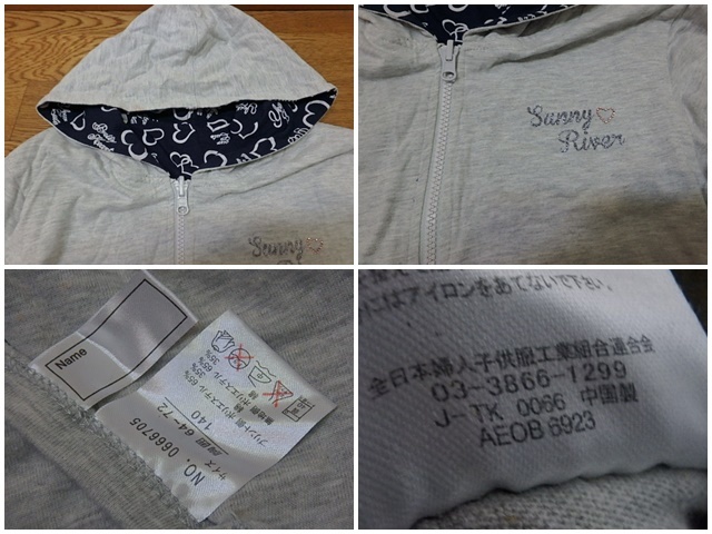 n402y 140サイズ リバーシブル ジップアップパーカー 上着 グレー 紺 女の子 子ども 子供服 中古