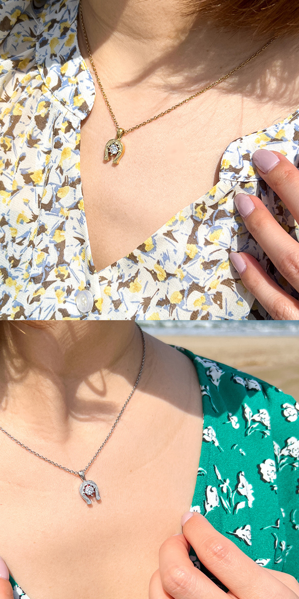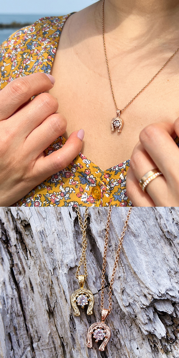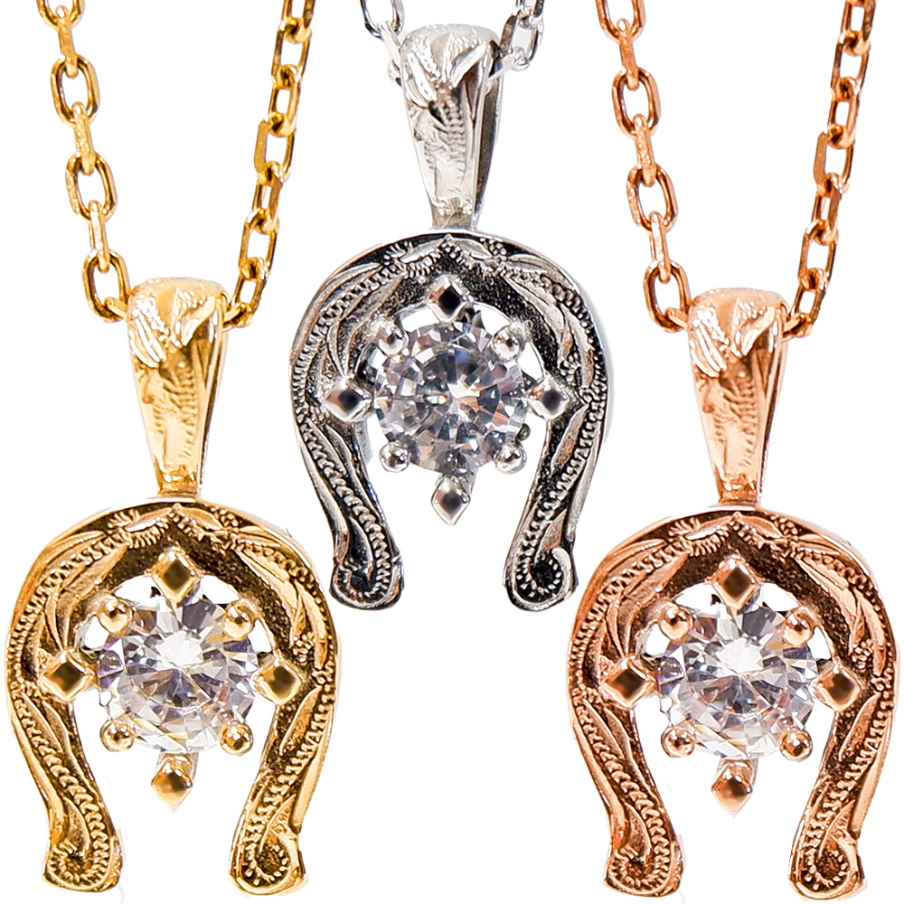 ★SNS★ハワイアンジュエリー★アレルギー&温泉&海水浴ご使用OK★ステンレスネックレス★ゴールド&ピンクGD&シルバー&馬蹄&ジルコニア★