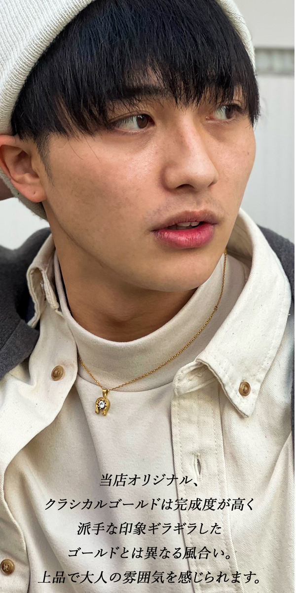 イエローゴールド、シルバーチェーン長さ:40cm又は45cmから留めれるタイプと45cm又は50cmから留めれるタイプからご希望のチェーン選択
