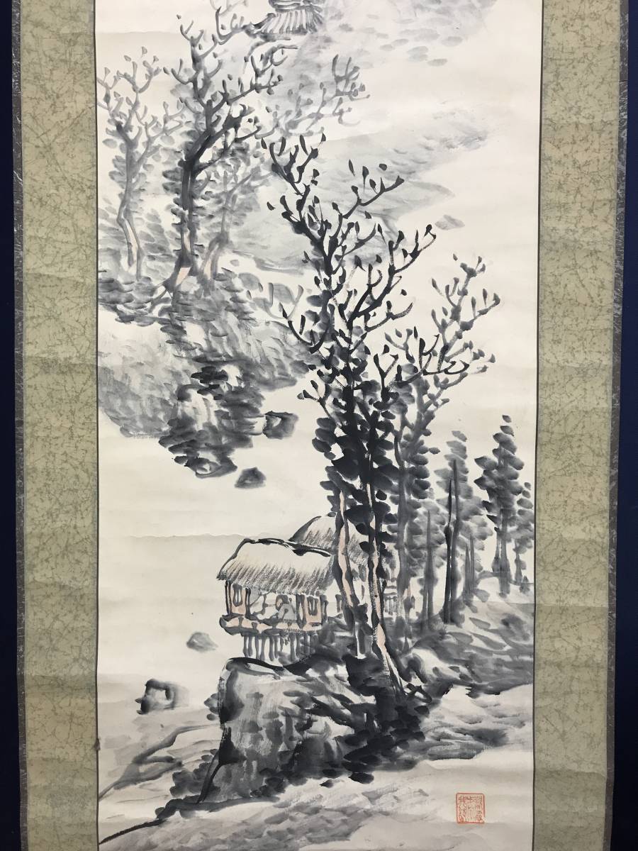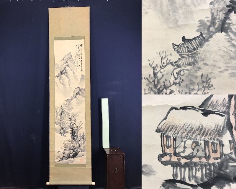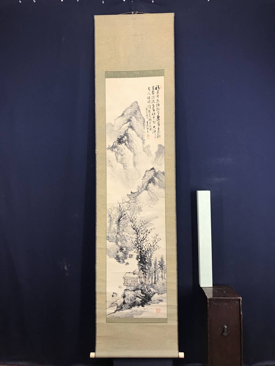 真作/星石紅美/渓山幽居画賛/山水図/山水画賛/掛軸☆宝船☆AE-335