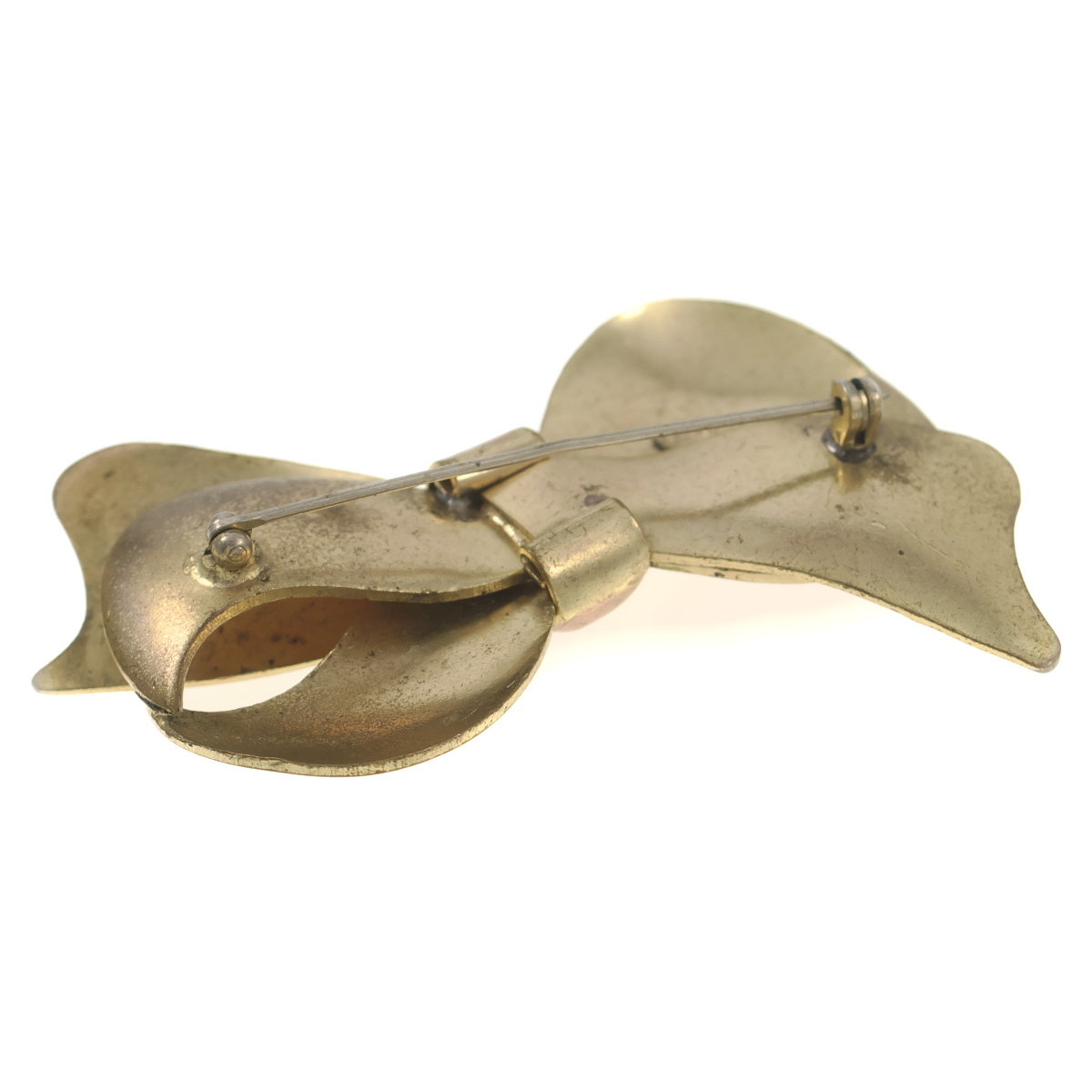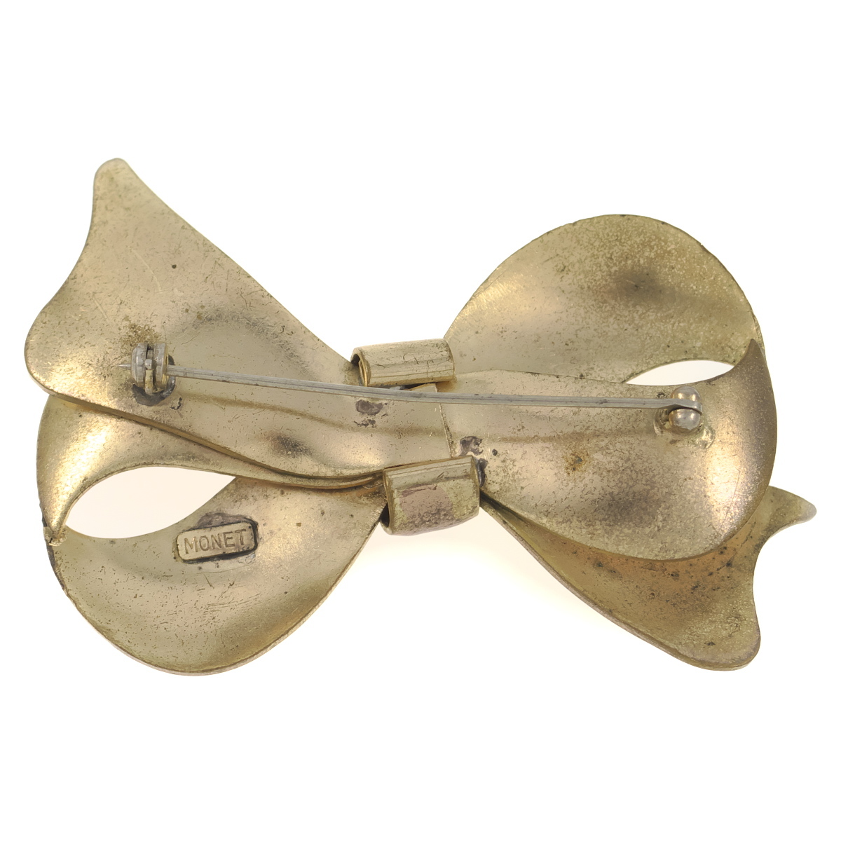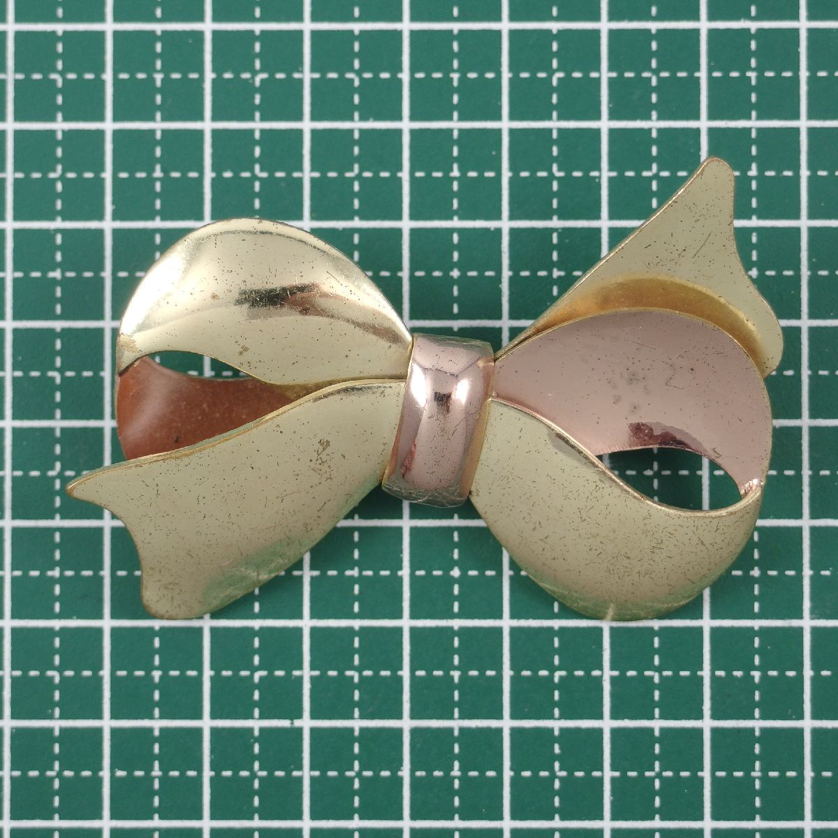A9528◆【MONET】◆リボンモチーフ ツートーン 金色 コッパー色 モネ ◆ ヴィンテージブローチ ◆