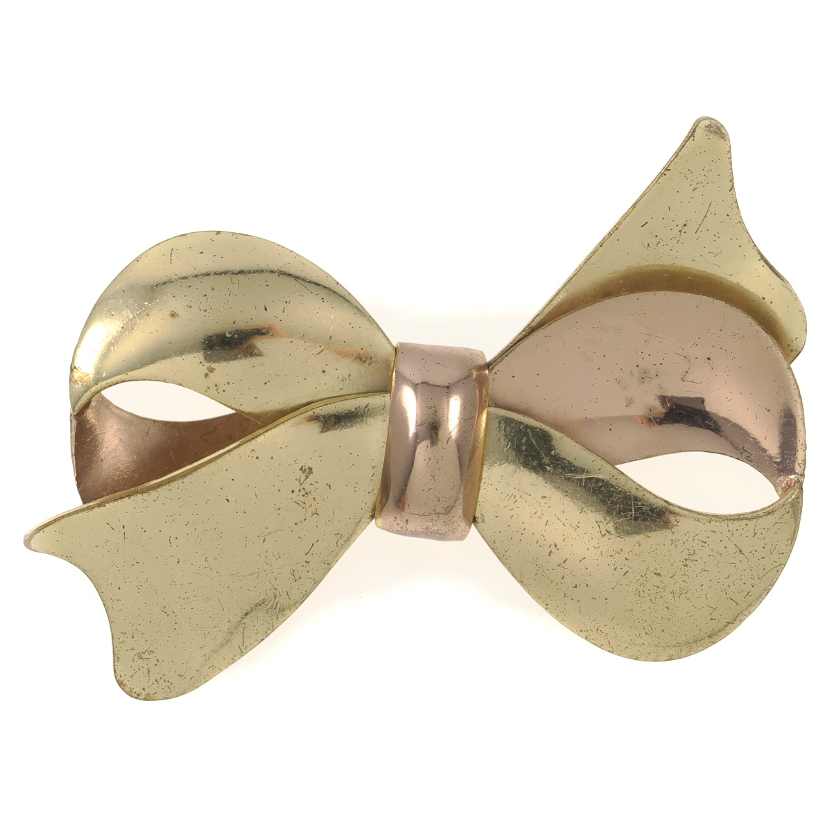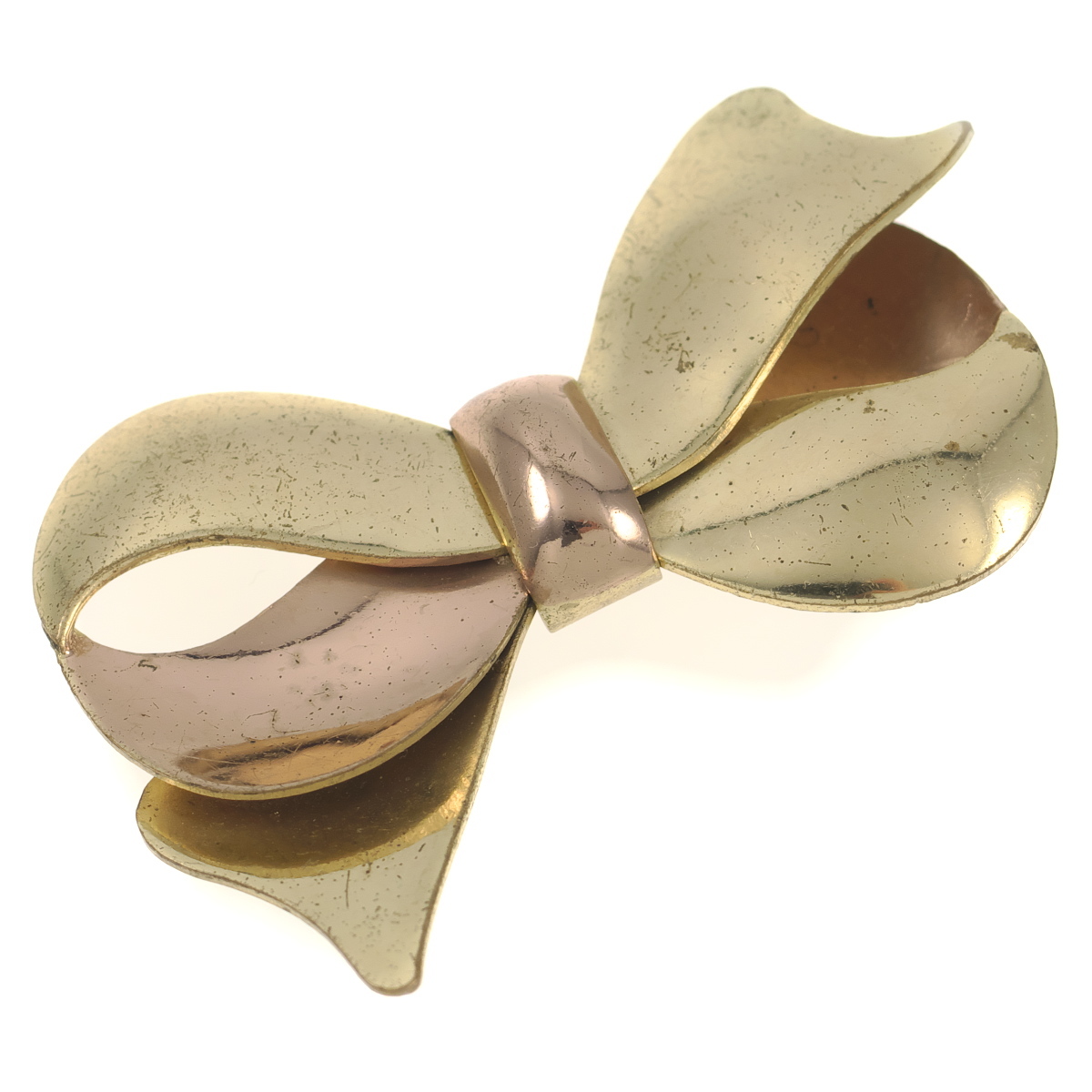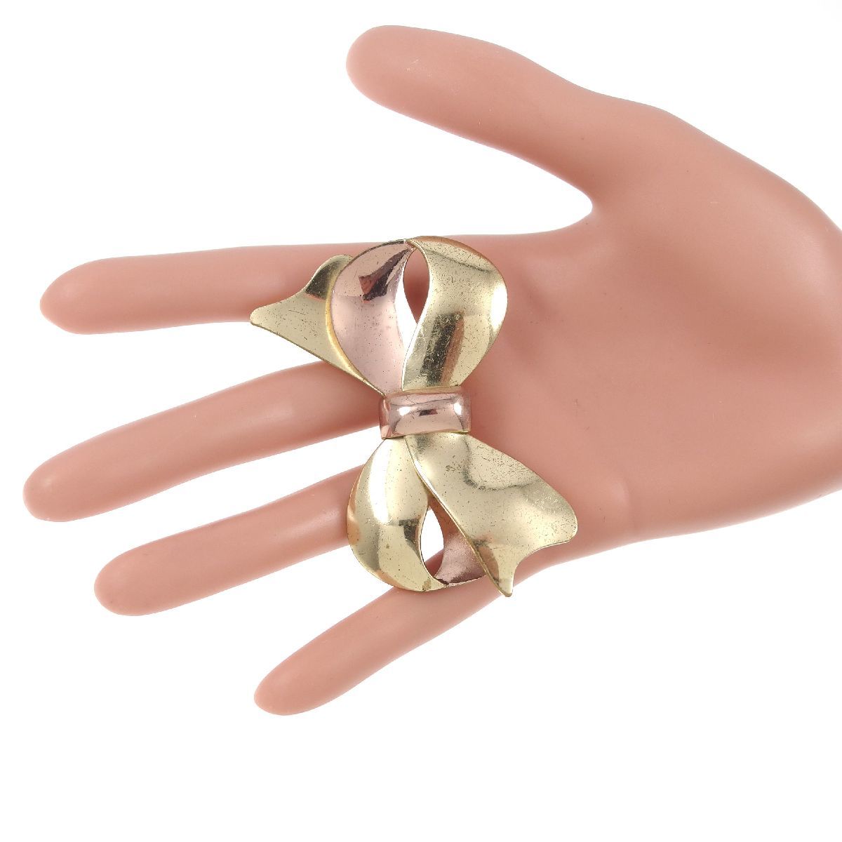 A9528◆【MONET】◆リボンモチーフ ツートーン 金色 コッパー色 モネ ◆ ヴィンテージブローチ ◆