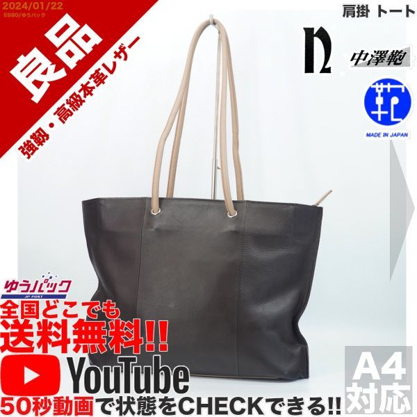 送料無料 即決 YouTube動画アリ 定価30000円 良品 中澤鞄 ナカザワ NAKAZAWA 肩掛 トート ビジネス レザー バッグ